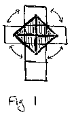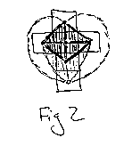 We know from experience (and from "Beyond the Third Dimension") that the dual to the hypercube is the 16-cell, which is i) a composition of 16 regular tetrahedrons. But we know now, from both analogy and process, that the 16-cell is also ii) two octah edrons sharing the same "base surface" (base surface being the outer crust / shell / armor of the octahedron, analogous to the "base diamond" before, which was the outer edges of the "diamond based pyramid" base diamond). So we can look at our 8 right te trahedra as i) half of the 16-cell, the tetrahedra of which will become regular when the cubes are folded into a hypercube, or ii) a skewed perspective view looking into the bottom half of a 16-cell. When we add the last cube with its centered vertex, 8 more tetrahedra will be created by connecting to the eight triangles on the outside of the "inner octahedron".