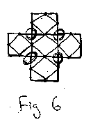 This is very interesting. We know that the dual to the cube is the octahedron, which is i) eight equilateral triangles, and ii) two "diamond" (note: diamond and square are same thing in 2 space, and in this case diamond is more appropriate) based pyra mids sharing the same base diamond. So we can look at our four right triangles as i) half of the octahedron, the triangles of which will become equilateral when the squares are folded into a cube, or ii) a perspective view looking into the bottom half of an octahedron. When we add the last square with its centered vertex, four more triangles will be created (which are difficult to represent in the plane) by connecting to the four outer squares (just like the inside square did).