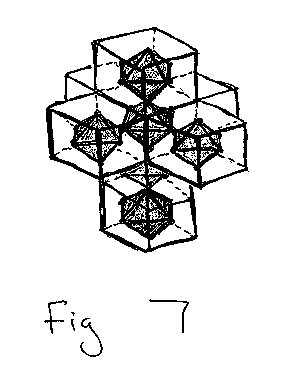 I've only just begun to look at 4D duality created by connecting the midpoint of edges (32 of them in the case of the hypercube). Using the same process as above, imagine the unfolded hypercube, each of the 8 cubes already "shaved" into the irregular polyhedra as described in part A before (figure5), folding together. Each virtex would become a tetrahedron (so 16 of them), and the final 4D irregular polytope would consist of these 16 tetrahedra and the oridinal 8 irregular polyhedra. More later poss ibly