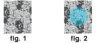 dot stereogram was invented by Dr. Bela Julesz in 1959 as an experiment to test stereopsis, the ability to see in 3D. Read more about the history of stereograms here LINKLINKLINK. By using a random dot pattern, Julesz eliminated the depth cues that are inherent in recognizable images.Consider this example. First create a rectangle of randomly arranged dots. (fig 1). Within that rectangle select a group of dots that make up a small shape. In this example the small shape is a circle and the selected dots are the dots that fall within the blue circle. (fig. 2).