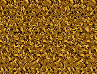 Have you ever been to the mall and seen one of those seemingly random dot patterned posters claiming to be a miraculous and wonderful three-dimensional image? Just "cross your eyes", or "look through it", or do some other seemingly crazy stunt, and the picture swill spring right out at you. Then you sit there and screw your eyes into wall, give yourself a headache and go nuts as three-year-olds walk up, point at the poster and cheer, "Look! A birdie!". Frustrating isn't it?
