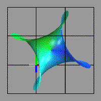 The five views in "Z-Cubed Necklace" are projections of the complex cubing function into three-space. We can get a better idea of the shape of the projection by looking at a sequence of three-dimensional images. Here we see the first projection as a three-dimensional object. From above it looks like a disk, but it is actually a monkey saddle (the real part of the cube).
