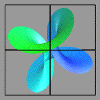 This movie shows the complete sequence of rotations from which the five in the "Z-Cubed Necklace" were taken. Notice that the projection into two dimensions maintains the four-fold symmetry throughout as the image moves from a disk to a triply covered disk containing a ramification point.