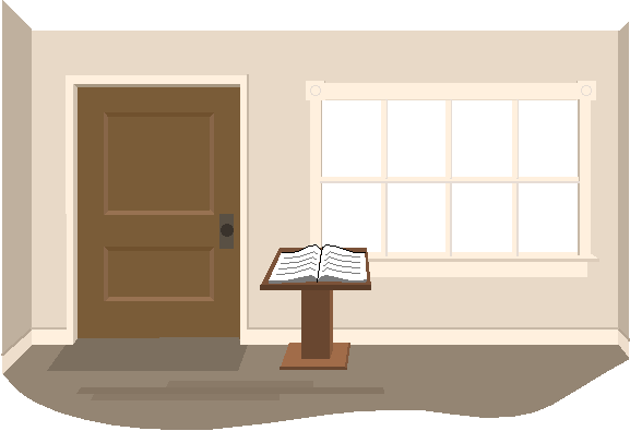 Click on the floor to get the floor plan again, and click on the left or right to view an adjacent wall. Exit the exhibit through the door.