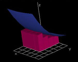 2. erecting rectangular prisms over these rectangles using the value of the function graph at the