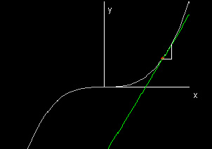 This demo shows a line which connects two points whose x coordinates differ by Δx. As Δx approaches 0, the slope of the line approximates the derivative of the function at the point (x0, f(x0)), represented here by a red dot.