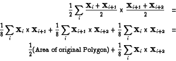 AreaNow what about the areas of midpoint pentagons for convex pentagons? For a regular pentagon, the area of the midpoint pentagon divided by the area of the original figure is 1/(4t2). However for a pentagon close to a triangle, with two vertices close to one vertex on the bottom and two close to the other vertex on the bottom, the area of the midpoint figure is as close to 3/4 as we please. This appears to be the maximum ratio attainable for pentagons.