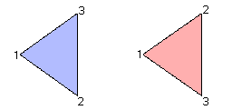 ![]() Figure 3. The triagle on the left is oriented in the counter-clockwise direction and so has positive area; the triangle on the right has negative area.